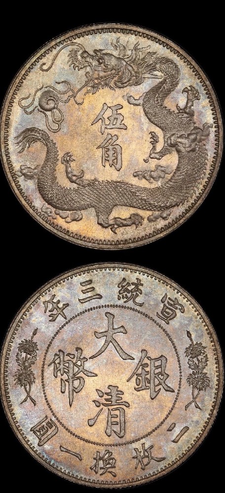 宣統三年大清銀幣伍角- PCGS(MS63)